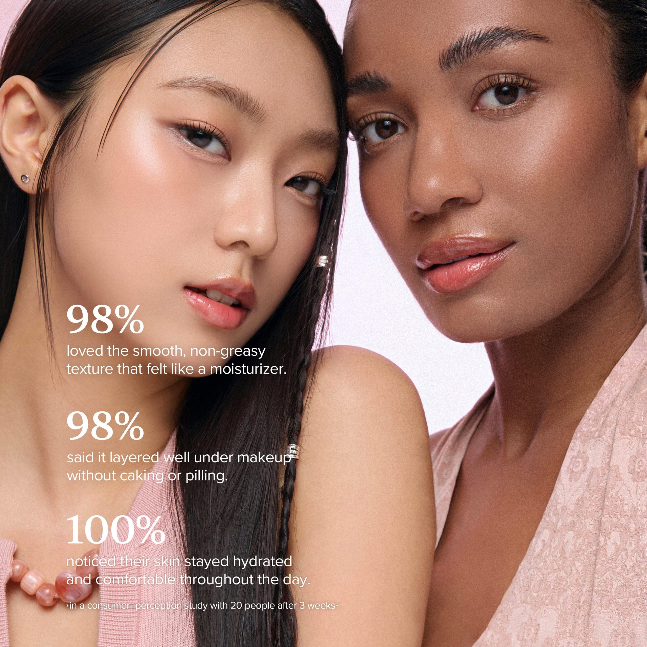 Cette texture légère laisse la peau naturellement lumineuse (jamais grasse), sans aucun voile blanc. Jamais. Facile à superposer, elle ne peluche pas, ne graisse pas et ne perturbe pas votre maquillage. De plus, elle est résistante à l’eau et compatible avec le maquillage, conçue pour s’intégrer parfaitement dans n’importe quelle routine.